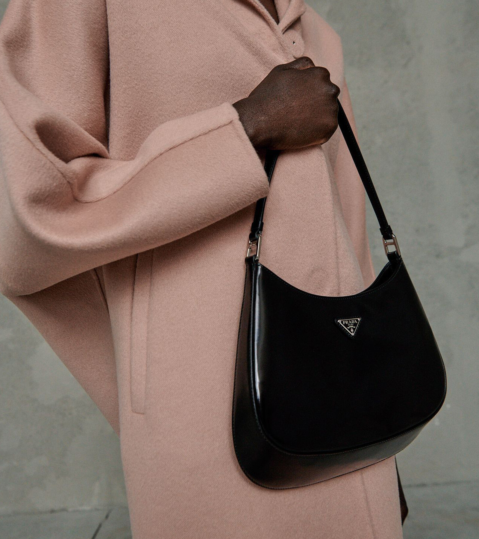 Prada Buckle Small Leather Handbag with Double Belt Black