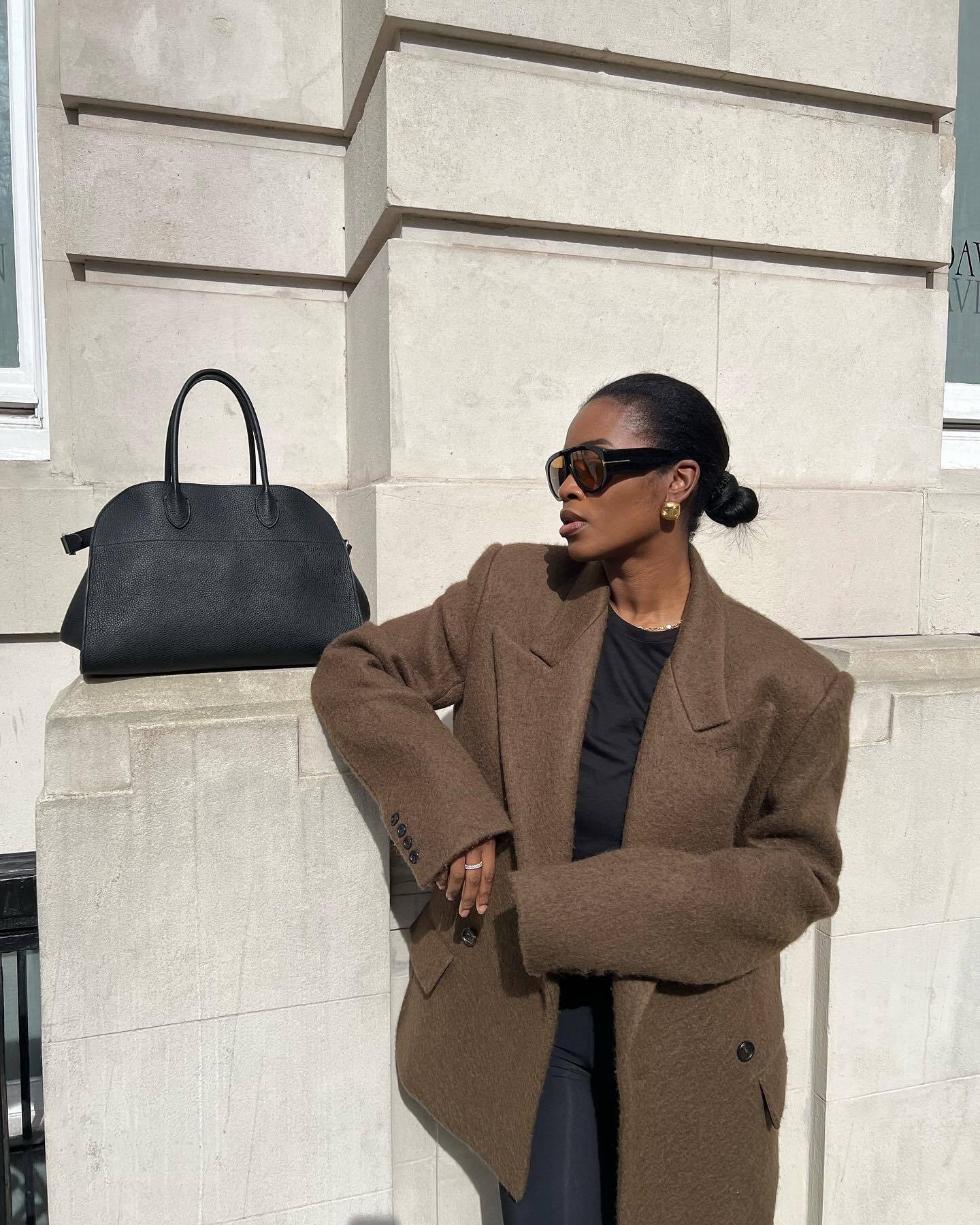The Row Soft Margaux 10 Bag in Leather Black